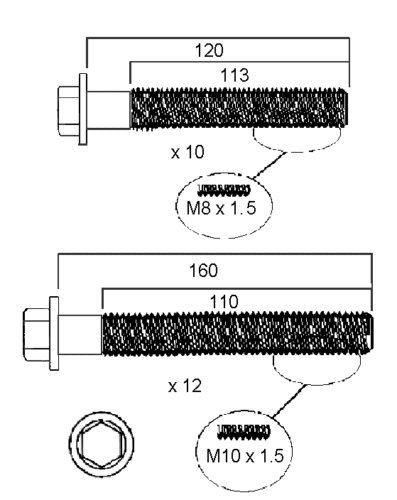 P5AT DOHC 20v Cylinder head bolts suits Ford Everest Ranger, Mazda