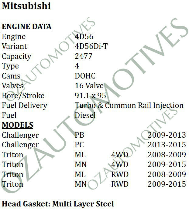 4D56-T 4 Cyl DOHC 16v TDCi 2008 2015 Suite Mitsubishi Challenger Triton ML MN PB