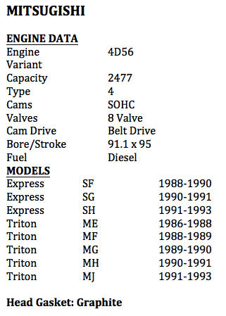 4D56 8v Engine Full Gasket Kit Fits Mitsubishi Pajero, Triton, Delica, Canter