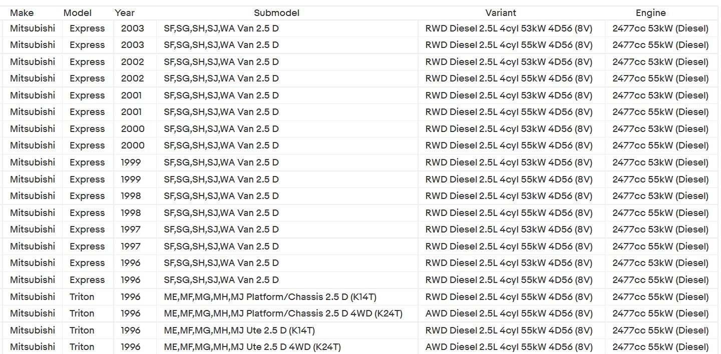DELCIA P05W[-] | DELCIA P15W[-] | DELCIA P25W[-] | DELCIA P35W[-] | PAJERO NH[-] | EXPRESS SJ[-] | TRITON MJ[-] | TRITON MH[-] | TRITON MG[3-6] | EXPRESS SH[9-9] | EXPRESS SG [9-9] | EXPRESS SF[1-1] |