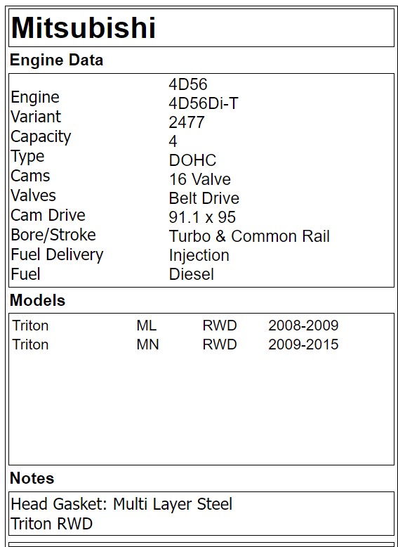 Mitsubishi 4D56TI 16v Head Gasket