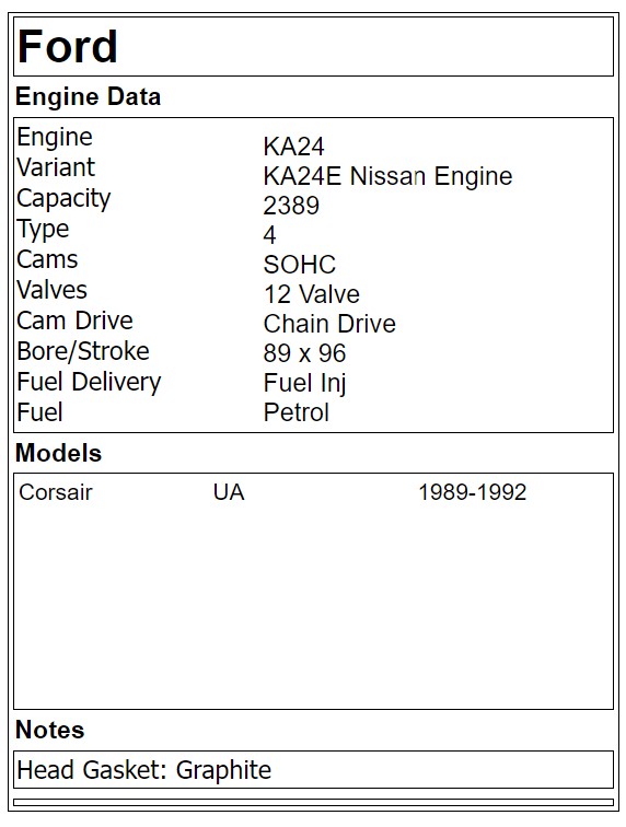 KA24 Head Bolts Set Fits Ford Corsair UA