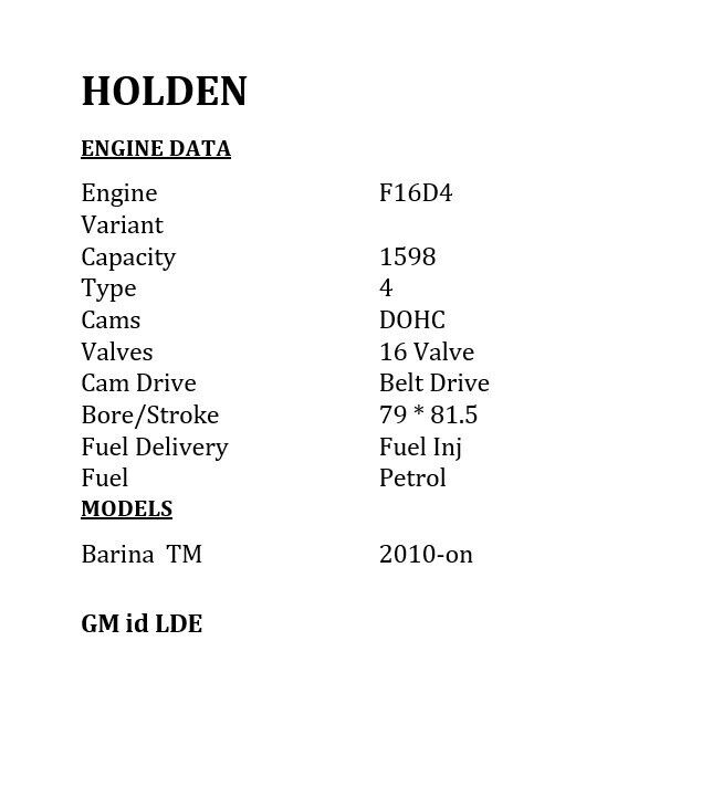 BRAND NEW F16D4 16v CYLINDER HEAD BOLTS SET FITS HOLDEN BARINA TM 2010 - ON