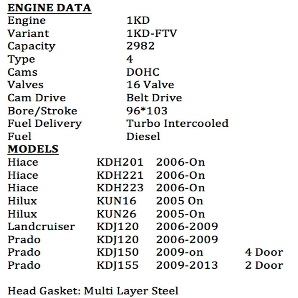 1KD-FTV Head Bolts Set Fits Toyota Hilux, Landcruiser/Prado, Hiace