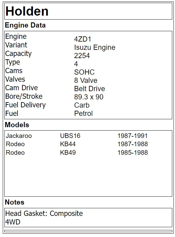 4ZD1 Head Bolts set Holden Isuzu