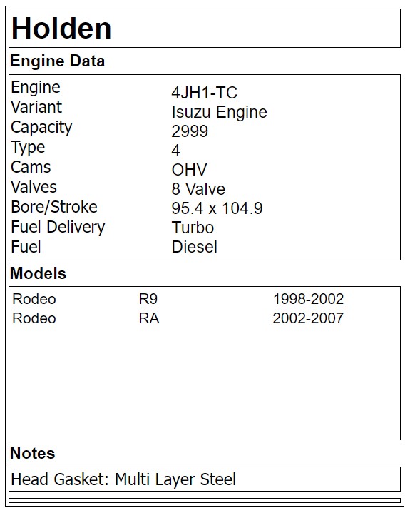 BRAND NEW 4JH1 GASKET KIT FITS HOLDEN