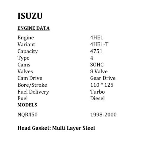 4HE1 4Cyl SOHC8v DTi 1998 2003 Suit Isuzu NQR400 450 NPR 200 250 300 350 400 450