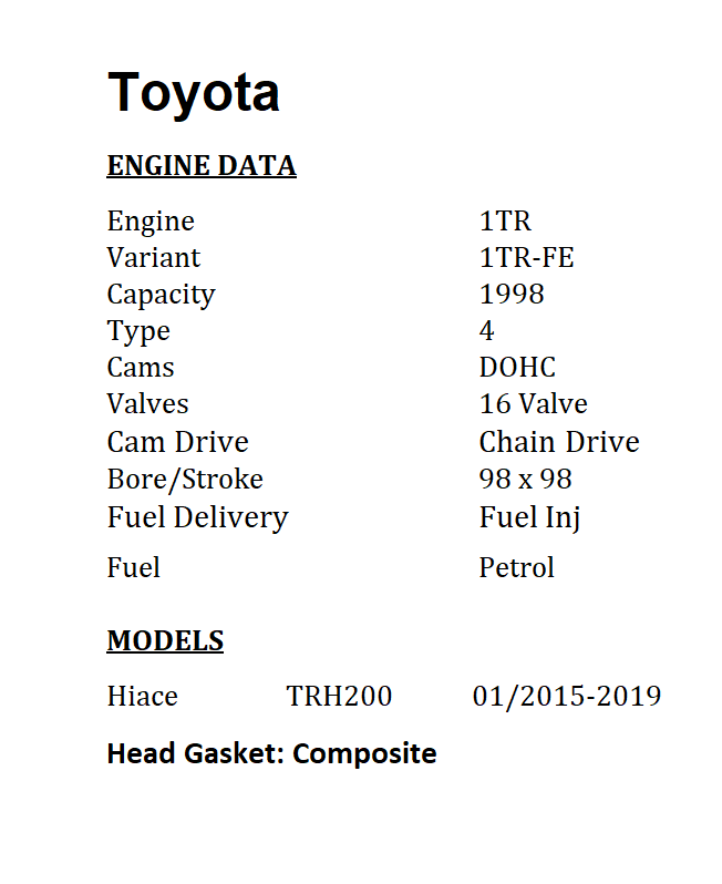 1TR Full Gasket Kit fits in Toyota Hiace TRH200