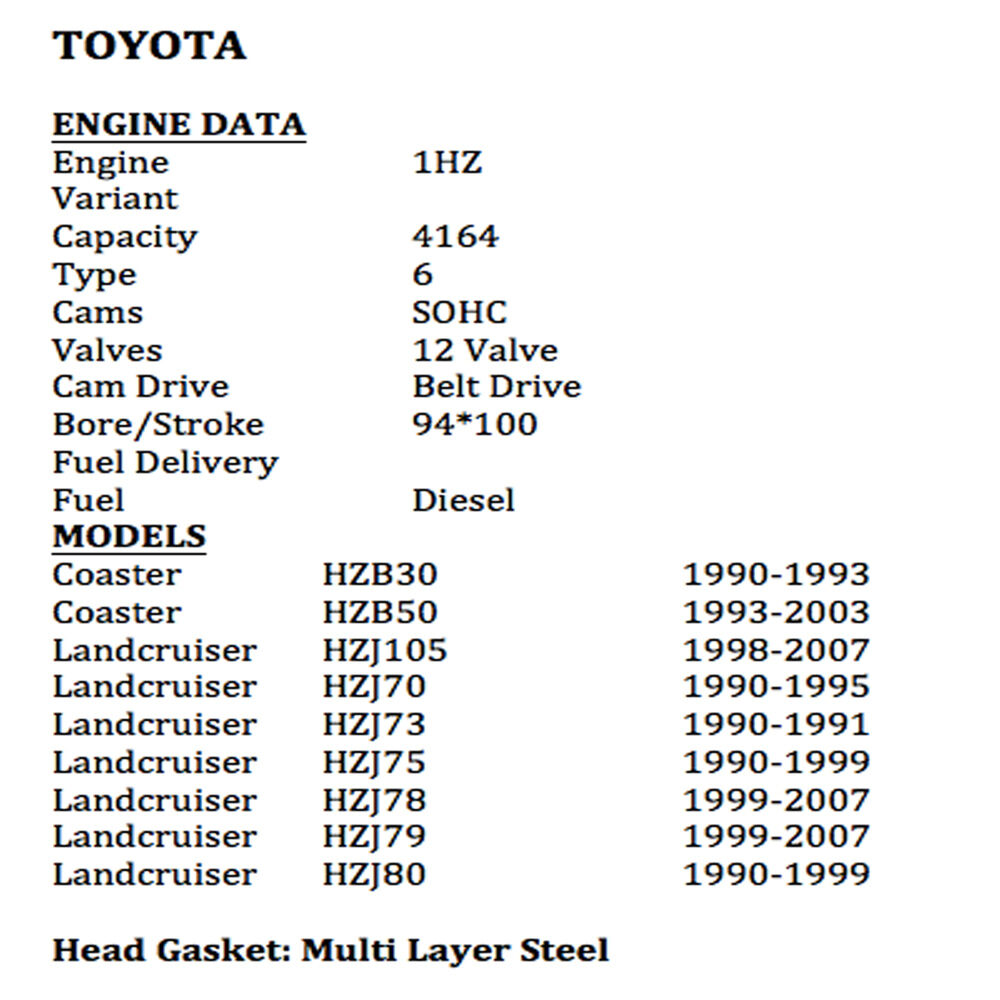 1HZ Head Bolt Set Fits Toyota Landcruiser HZJ105, 70,73,75, Coaster HZB30, 50