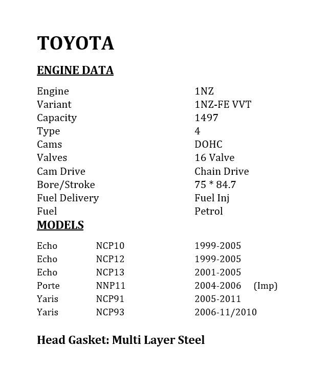 1NZ/2NZ Bare Cylinder Head